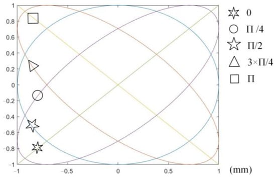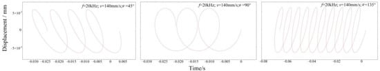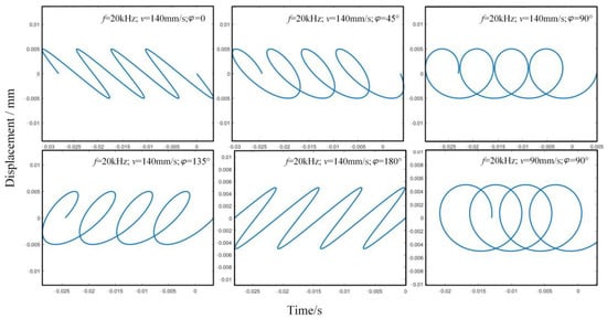 Compared with traditional cutting, UEVC has more flexible trajectory control and more prominent advantages in the processing of material surface micro texture. Different cutting paths can be generated by adjusting the control parameters of cutting path (vibration frequency, phase difference, amplitude and cutting speed). Finally, micro textures with different shapes are processed on the material surface. The single-period trajectory can be obtained by adjusting the phase difference and amplitude using MATLAB software, as shown in Figure 2.