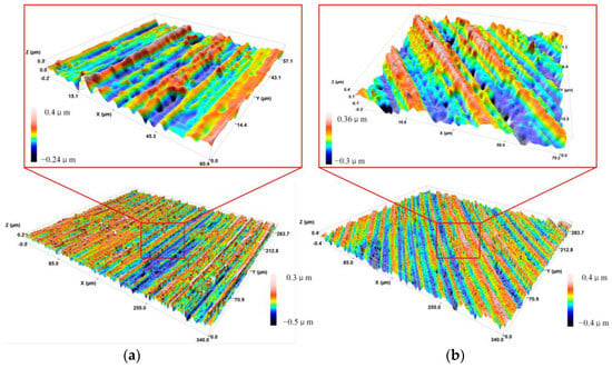 Three-dimensional surface morphology of UEVC workpiece. (a) The feed rate is 20 μm/r; (b) the feed rate is 25 μm/r.