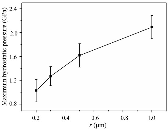 The maximum hydrostatic pressure under different tool edge radii.