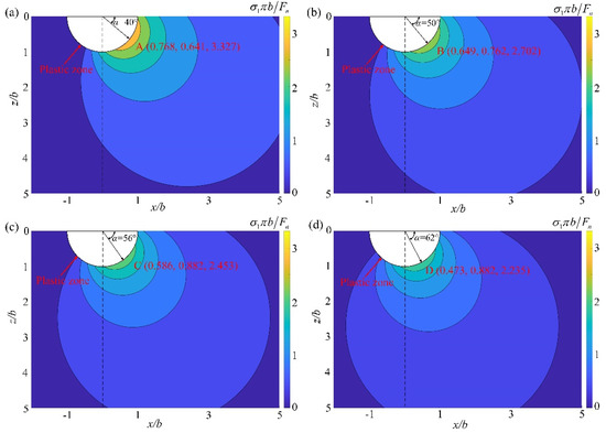 Converting the stress components in the polar coordinate system (r, α) to the rectangular coordinate system XZ, σxx, σzz and σzx can be obtained. Then, the maximum principal stress σ1 can be calculated by the following formula: