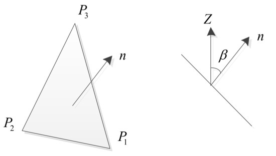 When the angle between the normal vector and the z-axis, then If β′ = 0° and it is a horizontal triangle, then delete this triangle. The value range of β is β ∈ (0, π/2].
