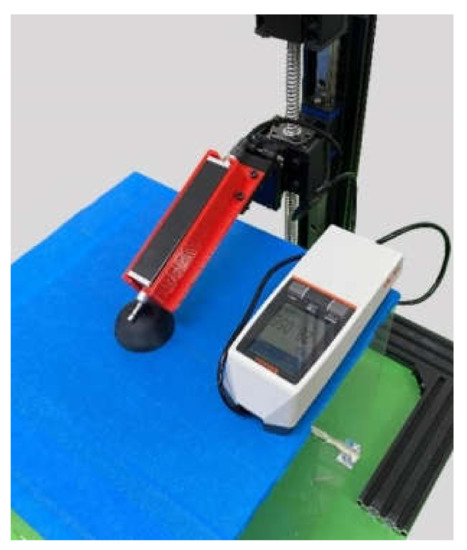 Based on Cura Engine open source code, Visual Studio2017 and C++ language are used to implement the algorithm in this paper, and then they are embedded into the FDM-3D printer control system to test the algorithm performance. An XYZ FDM-3D machine is used in the experiment, and the device is shown in Figure 7. The printing model material is PLA plastic, and the same printing parameters are used in different algorithms. The temperature of the extrusion head is 190 °C, the diameter of the nozzle is 0.6 mm, the wall thickness is 1.2 mm, the printing speed of the extrusion head is 50 mm/s, the no-load moving speed is 60 mm/s, the filling rate is 30%, the filling method is grid filling, and the filling line spacing is 3 mm. An Sj-210 surface roughness measuring instrument is used to measure the surface roughness of the printed test products. The testing device is shown in Figure 8.