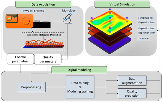 Nanoscale coating technology is widely used in the advanced industrial manufacturing, such as solar cell antireflection films and new multifunctional materials for the automobile and aircraft industries [1]. The process modeling of nanoscale coating manufacturing (NCM) can be utilized to predict coating quality and analyze the effects of coating control parameters (recipes). However, NCM processes, including coating processes using chemical vapor deposition (CVD), dip-coating, sputtering, and other methods [2], are usually complex, nonlinear processes that are difficult to model. In addition, advanced data-driven models can provide recipe guidance by using data augmentation in industrial manufacturing. Therefore, the need for improving coating quality has necessitated more and more intelligent applications of NCM process modeling for quality prediction.