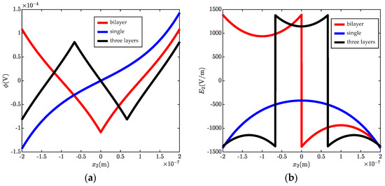 We are mainly interested in the electrical responses along the thickness direction, because the axial electric field is almost zero except at the two ends [35]. Therefore, we have