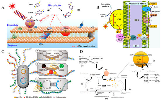 - Xiao, X.; Han, X.; Wang, L.G.; Long, F.; Ma, X.L.; Xu, C.C.; Ma, X.B.; Wang, C.X.; Liu, Z.Y. Anaerobically photoreductive degradation by CdS nanocrystal: Biofabrication process and bioelectron-driven reaction coupled with Shewanella oneidensis MR-1. Biochem. Eng. J. 2020, 154, 107466. [Google Scholar] [CrossRef]