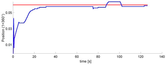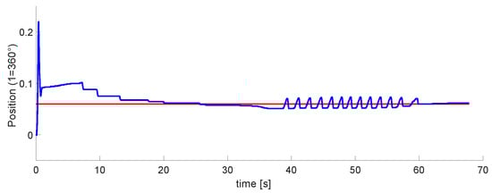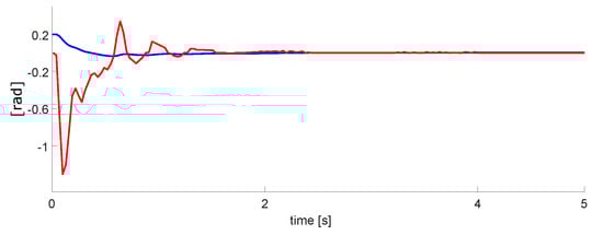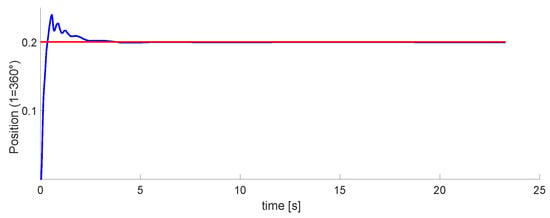 Figure 21 and Figure 22 plot the second and third DoFs. These are controlled by the pistons located on the robot. Their tuning was more complex than the first one. In the second DoF, there are disturbances, but it is possible to tune to the marked reference. The third one was the most difficult to implement.