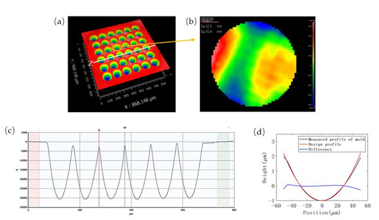 - Li, Y.; Li, K.; Gong, F. Fabrication and Optical Characterization of Polymeric Aspherical Microlens Array Using Hot Embossing Technology. Appl. Sci. 2021, 11, 882. [Google Scholar] [CrossRef]