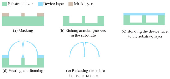 The fabrication process for microhemispheric shells based on the surface-tension method is given in Figure 2 and mainly consists of five steps [20,21].