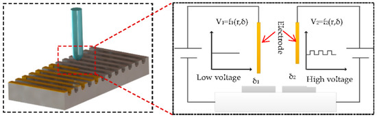 As shown in Figure 2, the low voltage discharge gap is δ1. With a high voltage pulse, achieving the breakdown of the discharge medium in the large interpolar gap δ2 can effectively improve the discharge machining gap, forming the plasma channel. At this time, the energy of low voltage and the large current can pass through the plasma channel to achieve local melting of the titanium alloy surface. Along with the machining trajectory of two poles, the melting microzone is recoagulated to form the microstructure. The parameters of HV-μEAM are shown in Table 4.