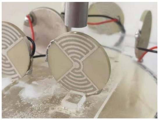 The linear range of the probe was 400 μm. The starting point of the measuring range was 2.5 mm. The measurement error was 0.3 μm and the resolution was 16 nm. This enabled assessment of the radial displacement of the sample. The positive branch electrodes of the LRE piezo disk were connected as a whole, as were the negative branch electrodes. It was necessary to first cut off other branch electrodes when the displacement of the LRE piezo disk driven by a piezo ring was detected. In this way, only the positive and negative electrodes of the given piezo ring could be energized.