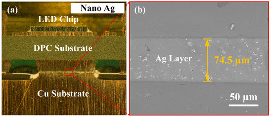 Cross-sectional images of (a) LED module and (b) nano-Ag bonding layer.