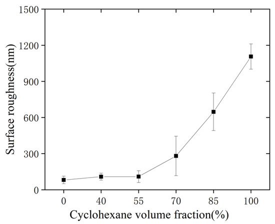 The surface roughness with different cyclohexane volume fractions.