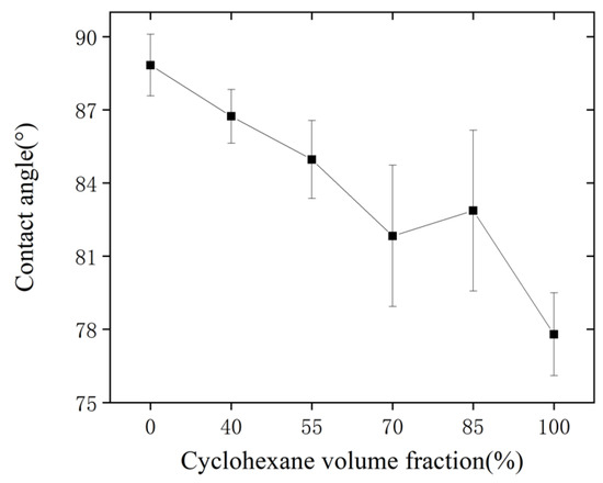The influence of cyclohexane volume fraction on the contact angle of the treated surface.