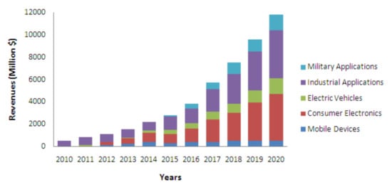 | Microwave radiation | Longer charging range | Low charging efficiency, health and safety issues in high exposure | Up to several kilometers | LEDs, implanted body devices, sensors, RFID cards |