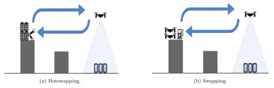| [126] | Battery hot swapping | Swap | Very high | Medium | Support multi-UAV charging | High round-trip energy cost Issues in autonomous swapping |