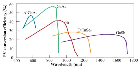 - Höhn, O.; Walker, A.W.; Bett, A.W.; Helmers, H. Optimal laser wavelength for efficient laser power converter operation over temperature. Appl. Phys. Lett. 2016, 108, 241104. [Google Scholar] [CrossRef]