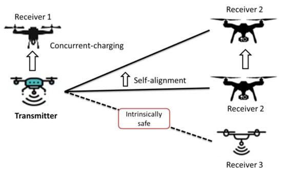 - Concurrent Wireless Charging: A DLC system generates a resonating beam when a receiver is exposed to the LOS path of the transmitter. Hence, a single transmitter has the capability to create several resonating beams pointed towards multiple receivers, which enables concurrent WPT from one transmitter to multiple receivers.