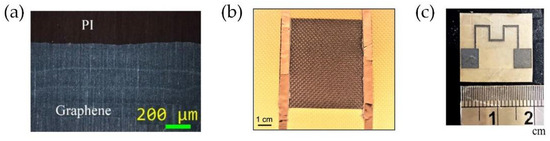 - Tseng, S.F.; Tsai, Y.S. Laser-induced graphene via the far-infrared irradiation of polyimide films for flexible electric heater applications. Int. J. Adv. Manuf. Tech. 2022, 120, 5351–5362. [Google Scholar] [CrossRef]