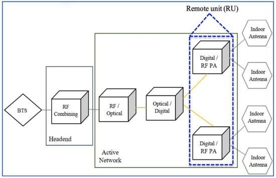 A block diagram of an indoor distributed antenna.