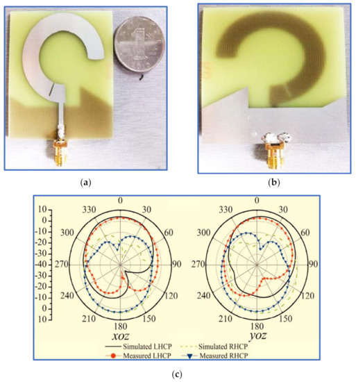 - Ding, K.; Gao, C.; Yu, T.; Qu, D. Broadband C-shaped circularly polarized monopole antenna. IEEE Trans. Antennas Propag. 2014, 63, 785–790. [Google Scholar] [CrossRef]