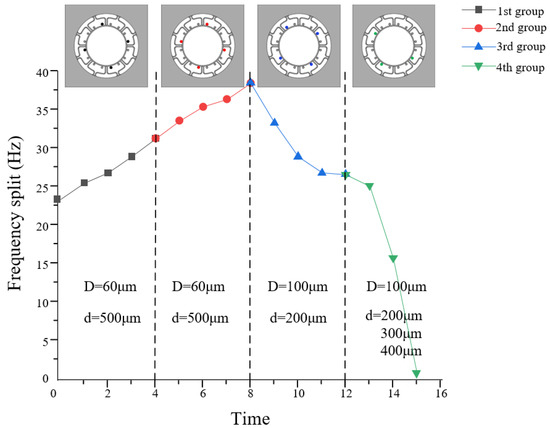3.4. The Relationship between Hole’s Sizes and Frequency Split