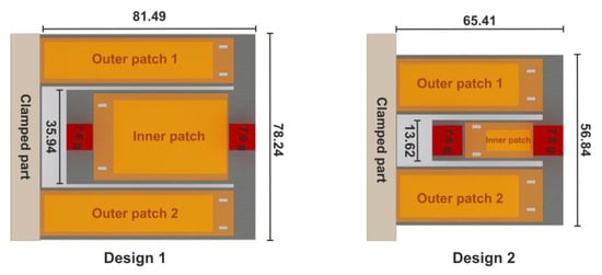 Optimized harvesters’ designs: design 1 (left), design 2 (right).