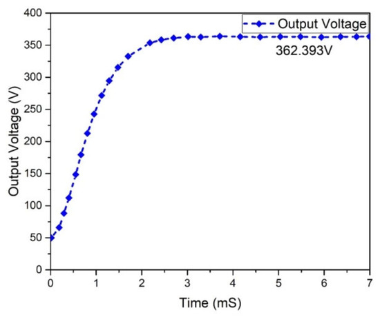 Output voltage of presented Flyback boost converter based (GaN-HEMT).
