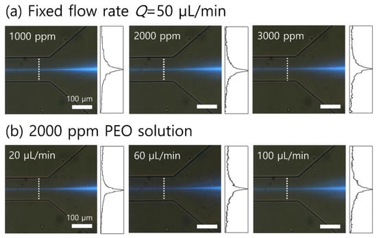 - Kim, B.; Kim, J.M. Elasto-inertial particle focusing under the viscoelastic flow of DNA solution in a square channel. Biomicrofluidics 2016, 10, 024111. [Google Scholar] [CrossRef]