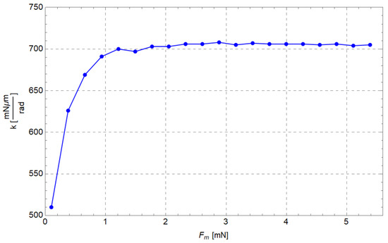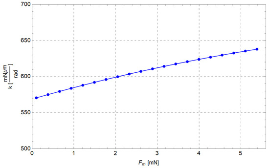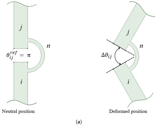 In Equation (3), is calculated by making reference to the rotation angles that apply to the revolute hinges of the Pseudo Rigid Body Mechanism (PRBM) for a given configuration. Hence, considering the total energy absorbed by the revolute joints (equipped with a torsional spring k ), it is assumed that , with