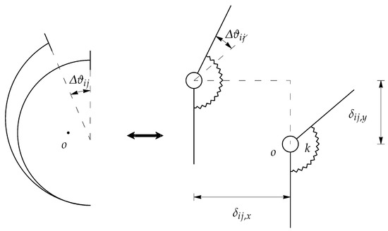 Since, as supposed in Section 2.3, all the flexure hinges have equal geometry and materials, the torque exerted by the n-th flexure hinge on each of the revolute links i and j can be written as (see Figure 1)