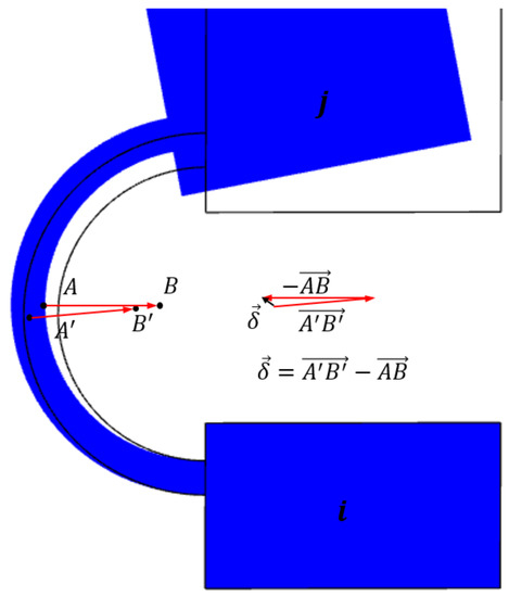Figure 3. Difference vector of the distance between points A and B of a generic flexure hinge calculated, respectively, for the neutral and deformed configuration. - (II)
