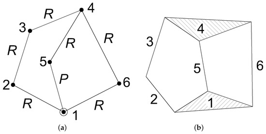 Figure 5a shows the graph representation of the Stephenson KC. Another possible way to define the topology of a KC is the polynomial representation illustrated in Figure 5b, according to which binary or ternary links are represented as lines or triangles, respectively.