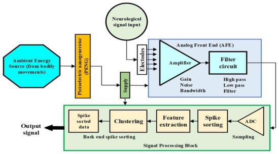 Implantable medical devices (IMDs) have been increasing in popularity, but the absence of long-life power sources to supply them has been observed as one of the major challenges to their widespread use in acquiring and interpreting electrical data from the human brain and nervous system []. The development of IMDs faces critical challenges in terms of reducing their size and expanding the device lifetime. When minimizing the IMDs, we encounter conflicting requirements, since each separate functionality expected from a detection and neurostimulation system poses a need for an additional dedicated circuit area and, hence, a dimension increase.