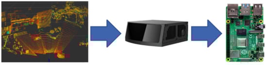 In order to sense the road environment in real time and assess the safety status of the wheelchair while it is moving, the article selects RoboSense’s 3D lidar RS-LiDAR-M1 made by Robosense, Shanghai, China, which is the world’s first and only radar based on MEMS intelligent scanning technology and AI algorithm technology for self-driving passenger cars, using a main data stream output protocol to output 3D point cloud coordinate data, reflection intensity information and time stamps.