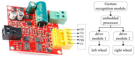 For recognition accuracy, cost and practicality considerations, this paper uses the high-performance gesture recognition sensor module ATK-PAJ7620 from Alientek, Guangzhou, China, which uses the PAJ7620U2 chip from Original Phase Technology (Pixart) and supports the recognition of 9 gesture types such as left, right, front, back, etc. [