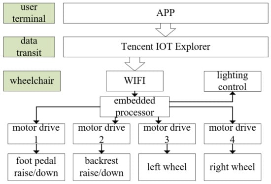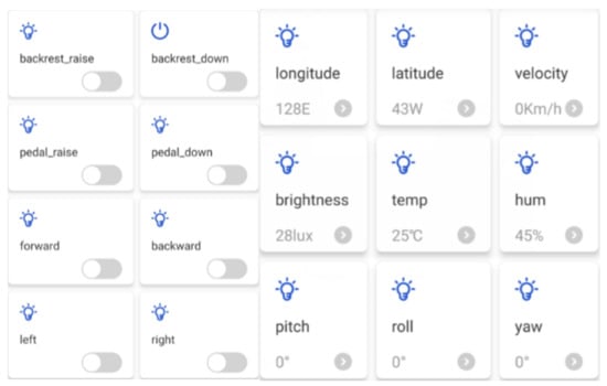 29], humidity and light intensity of the environment in which the wheelchair is located, while displaying this information in the APP, so that the wheelchair user can remotely access the real-time environmental status of the wheelchair.