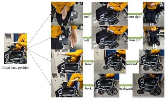 People with muscle atrophy and arm weakness are unable to control the wheelchair by means of a joystick or hand push, while the joystick is flexible and unsuitable for some elderly people. Therefore, we designed a user state sensing solution based on gesture recognition, in which gesture recognition sensors are installed on the wheelchair to detect changes in the user’s gestures and use the gesture recognition information to also control the movement of the wheelchair. In addition, pulse and blood pressure sensors are also installed on the wheelchair in order to fully sense the physiological status of the user.