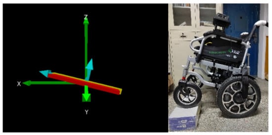 25], based on the IIC (Inter-Integrated Circuit) protocol, which is capable of outputting three-axis acceleration and three-axis gyroscope information to enable real-time monitoring of the wheelchair’s attitude angle, as shown in
