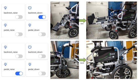(2) Wheelchair control: we have implemented joystick control, gesture control and APP remote control of the wheelchair. The three control methods can be applied by different people and realize the forward, backward, left and right turn functions of the wheelchair. In the APP, the user can also control the footrest and backrest of the wheelchair and view the real-time sensory data of the wheelchair. In addition, the delay for remote control is around 100 ms, and the accuracy rate of hand gestures and APP control is about 90%.