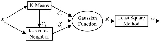 In the network operation structure, the input layer is . When a Gaussian function is used for the basis function in the radial basis neural network, the predicted conductivity can be expressed as: