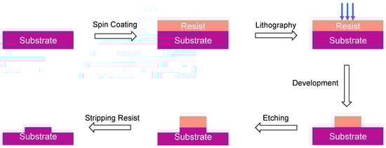 Once the desired AlGaAs heterostructure is ready, one can proceed to fabricating the actual integrated photonic devices, following a top-down fabrication approach. A schematic of this process is shown in Figure 2.
