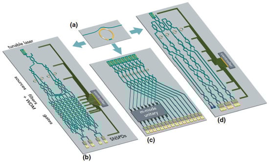 - Francesconi, S.; Baboux, F.; Raymond, A.; Fabre, N.; Boucher, G.; Lemaître, A.; Milman, P.; Amanti, M.I.; Ducci, S. Engineering two-photon wavefunction and exchange statistics in a semiconductor chip. Optica 2020, 7, 316–322. [Google Scholar] [CrossRef]