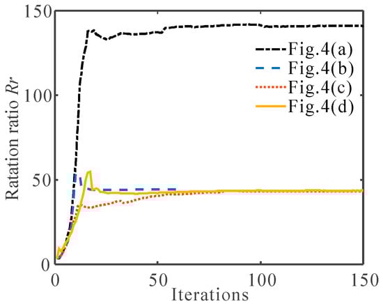 The convergence histories of the rotation ratio Rr for the obtained flexure hinges described in Figure 4.