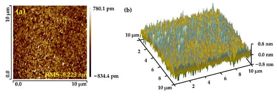 The surface roughness of the NiP coating was measured by atomic force microscope (Dimension Icon, Bruker, Rheinstetten of Germany) after six times of smoothing polishing. The results are shown in Figure 14, the surface roughness of the NiP coating reached RMS 0.223 nm.