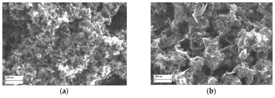 The NDC obtained at k = 0.11 consists of rounded particles with a size of tens of nanometers (Figure 2a), while that obtained at k = 0.68 consists of graphene-like particles with an in-plane size of 100–200 nm and a thickness of up to 20 nm (Figure 2b). Transmission electron microscopy studies of the carbon particles proved that the rounded particles are hollow [18]. In this work, cytotoxicity of NDC powders with these two morphologies was examined.