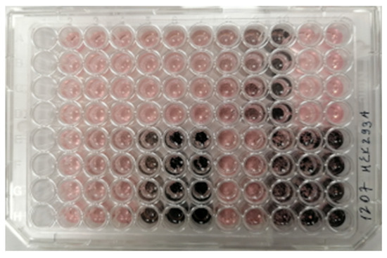 A 96-well cell culture plate with NDC samples added.