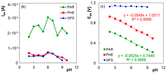 3.1. Electrochemical Behavior of PAR, PHE and GFS at PGE*