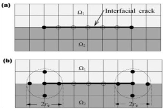 The Extended Finite Element Method (XFEM) is based on the Finite Element Method (FEM) used to treat discontinuities. The objective of the research is to evaluate the bonding properties between fiber and matrix and to define a technique for comparison of mechanical properties i.e., strength and stiffness in interfacial debonding. This will help us improve the interfacial properties of composite laminates in order to avoid delamination. Implementation of XFEM [23,24,25] and simulations of different loading conditions for the proposed ECDM model and the modified CZM are tools for the prediction of the crack growth due to delamination. The simplification of the modeling of discontinuous phenomena is the main benefit of XFEM methods for different problems in materials science. In the traditional formulation of the FEM, a fracture is modeled by requiring the fracture to follow element edges. In contrast, the fracture geometry in the X-FEM does not need to be aligned with the element edges, which is a great flexibility.