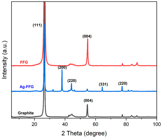 Figure 5. XRD patterns of graphite, FFG, and AgFFG.
