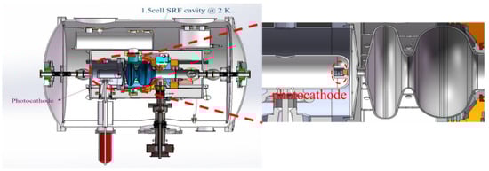 The superconducting radio frequency photoinjector (SC RF gun or SRF gun) combines the principle of a photoelectron gun with the application of a superconducting (SC) accelerating cavity. The photocathode is located very close to the SC cavity or directly in contact with it. Since the first concept was proposed by H. Chaloupka in the 1988 EPAC [], the SRF gun has been proved to be a successful technology producing high brightness and a high-current beam, which is required by continuous-wave (CW) free electron lasers (FELs) and energy recovery linac (ERL) facilities [,,,]. Recently, more and more attention has been paid to this type of modern electron source. Compared to the “traditional” direct current (DC) guns [,,] and warm radio frequency (RF) guns [,], this type of injector is even more challenging, attractive, and promising.
